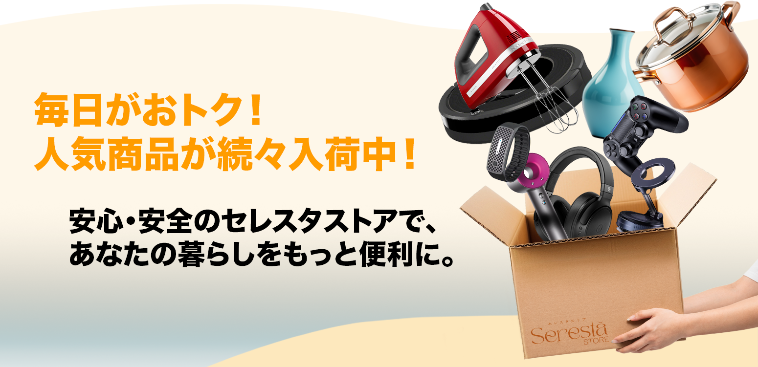 セレスタは、あらゆるニーズに応える汎用ショップとして、選び抜かれた商品を幅広く取り扱っています。日用品からファッション、ガジェット、ホームアイテムまで、こだわりのセレクションで毎日の暮らしをサポート。信頼できる品質とスタイルを大切にし、あらゆる世代のライフスタイルにフィットする商品をご提供します。